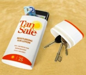 9. Use an empty sunscreen bottle to store items (credit card, keys, some cash, and lipstick) people will not suspect anything more than sunscreen, thus protecting these items.